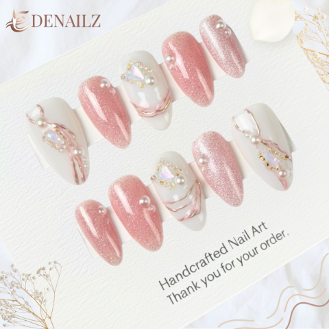 The "Milky Cat Eye Butterfly" collection by DENAILZ is a premium, manually handcrafted set of press-on nails that showcases soft and modern elegance. These nails are dominated by a milky white color, enhanced with a subtle, dimensional, and unique Cat Eye effect, which provides a delicate, shifting shimmer. The design focuses on dreamy elements: the nails are adorned with tiny 3D butterflies, minimal and chic silver chrome lines, and scattered small crystals to add a touch of luxury. These press-on nails deliver an elegant, clean, and exquisite look, perfect for both everyday style and formal occasions.